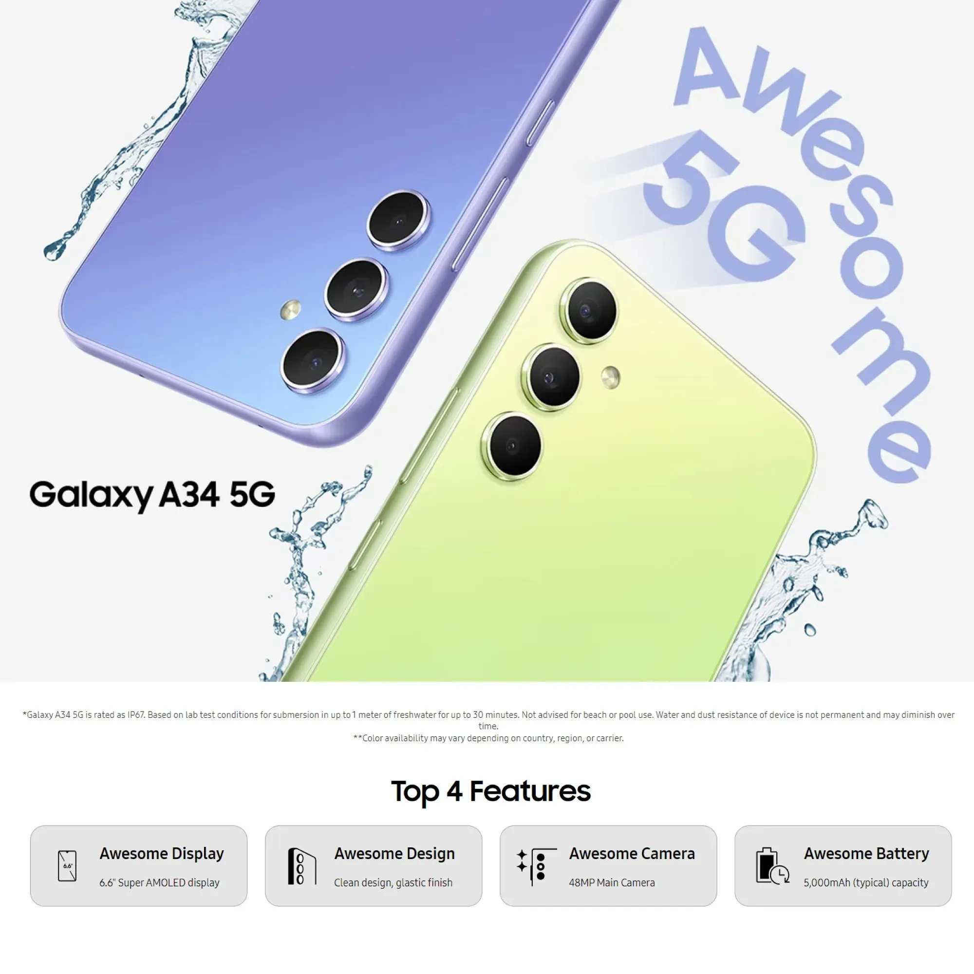 三星Galaxy A34 5G 128GB Rom+8GB Ram/1年本地三星保修(免费:钢化玻璃+后盖)